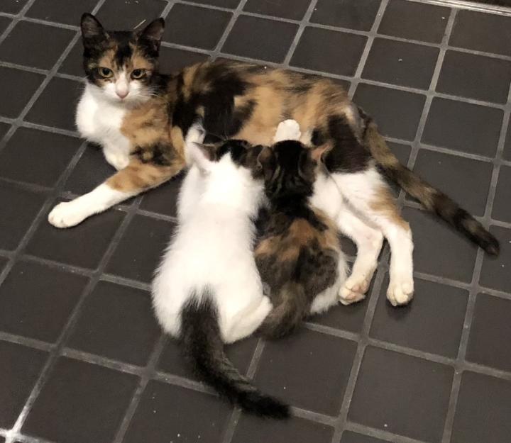 私が褒めると、母三毛さんは授乳を辞めて駆け寄ってきちゃうので、そのまま黙って自室に戻る人間でした( ´ ▽ ` )