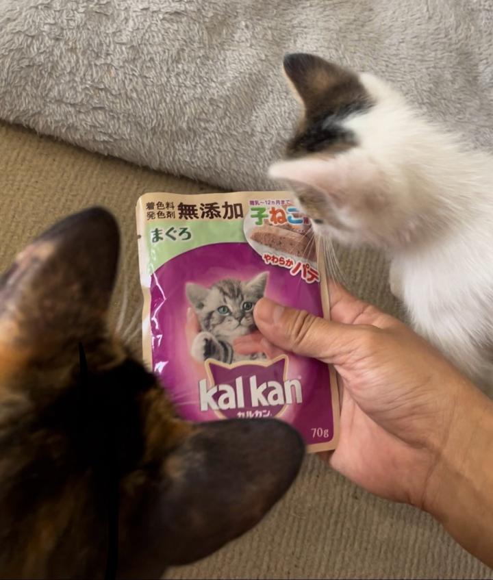 このカルカンの子猫用、着色料も保存料も無添加!なやつが、舌触り滑らかでコスパも良いし、離乳食にも持ってこい!なんです(o゚ω゚o)!
