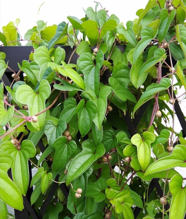 日本に入ってきた栽培種と云われます。丸い実のようなものはムカ