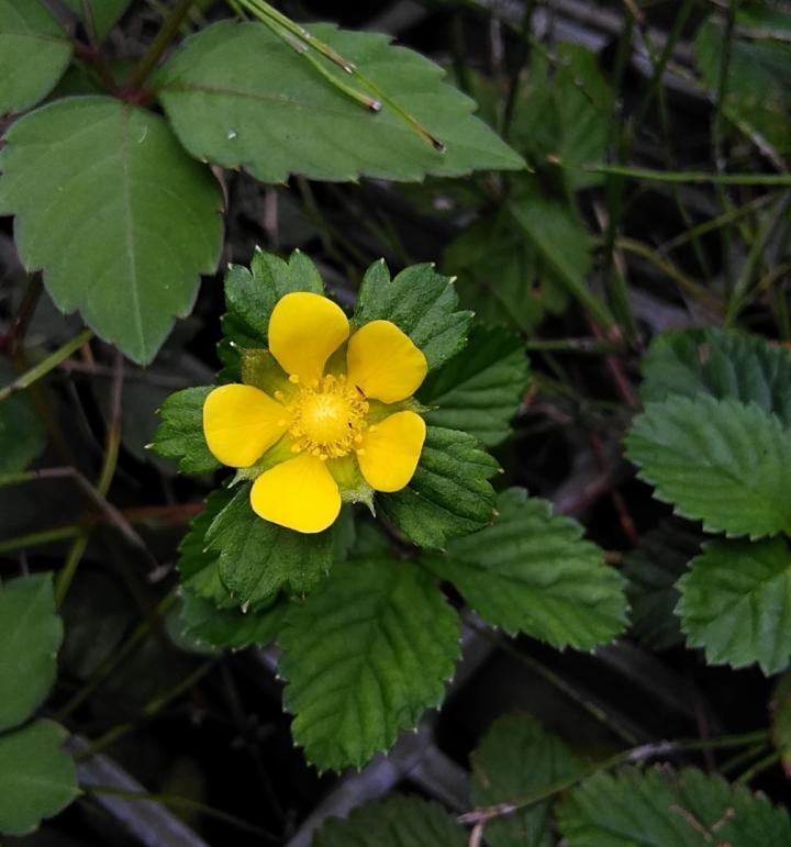 ヘビイチゴより花がすこし大きくて、径2cmほどです。