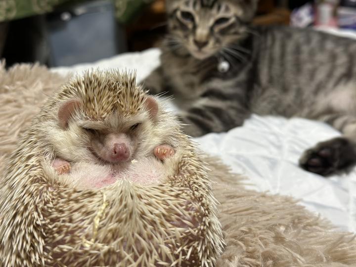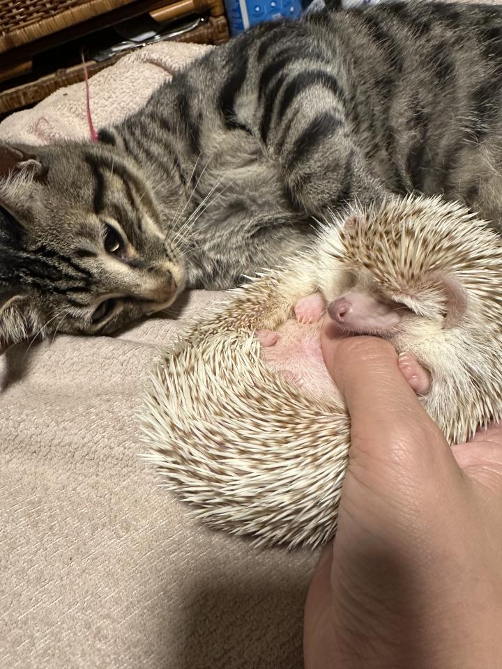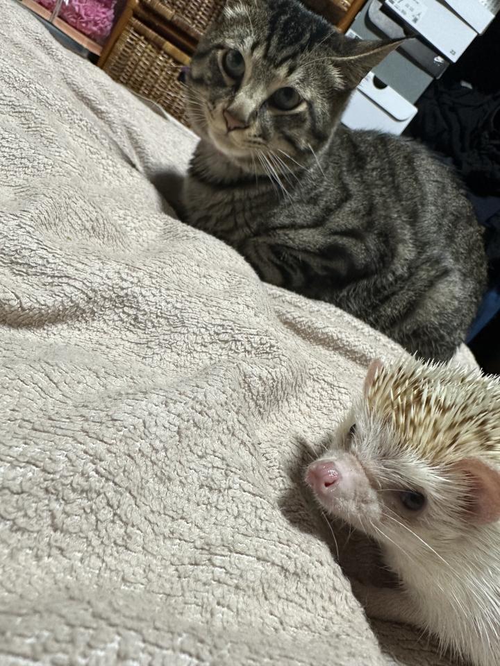 猫の他にハリネズミ?飼ってます チュロスは、約4か月の時に車のバンパーにて、鳴いているところを発見、里親になりました。 猫ちゃんがこんなにも人生を華やかにしてくれるとは思いもよらず。出会え...