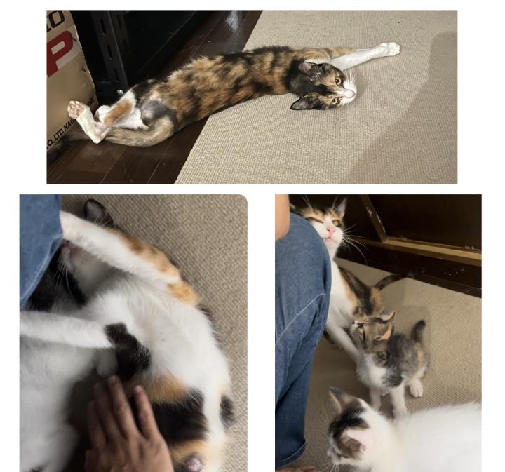 そして何処らかしこに落ちてる事が増えた母三毛さん。人間への甘え方も自分の子が居るとは思えない程です(*´꒳`*)