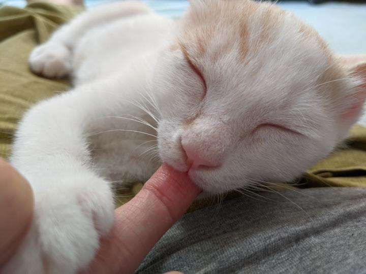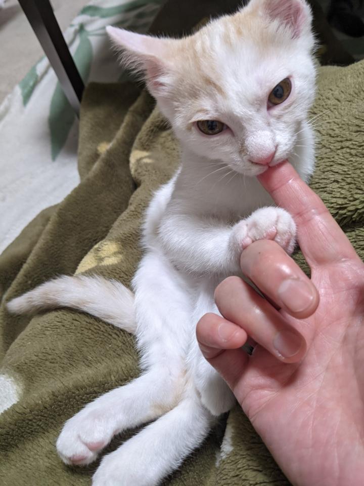 指を口元に近づけたら噛みながら探しているような…?それから一緒に練習して指吸いチュパチュパを上手に出来るようになりましたぁ〜♪