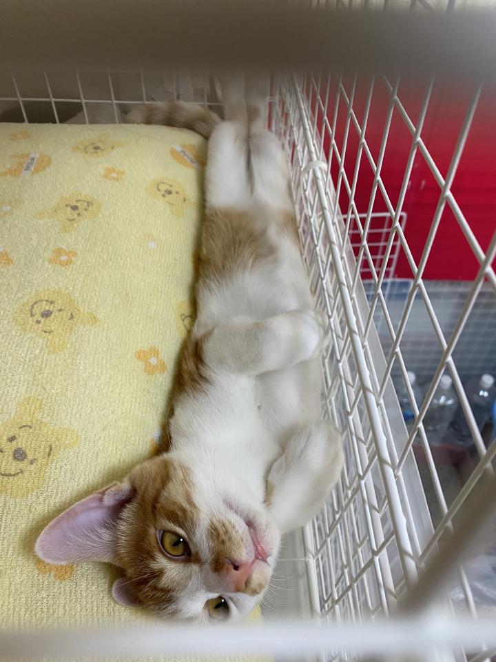 ケージの中では 安心安全なので、いつもリラックスしてるんですが、今日は一直線だったので 笑ってしまいました(≧∀≦)