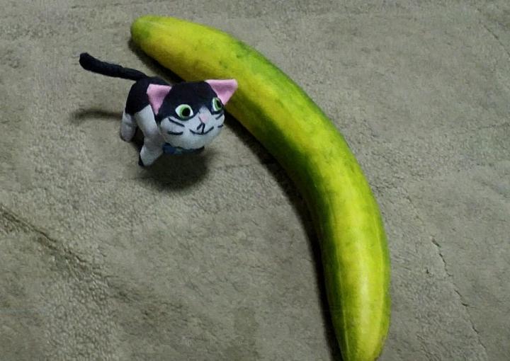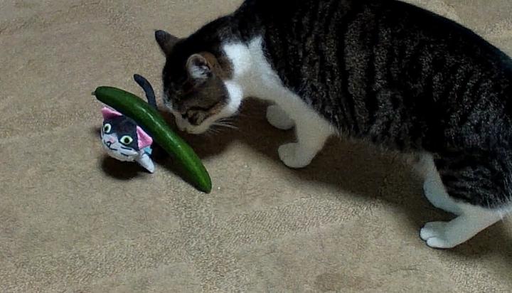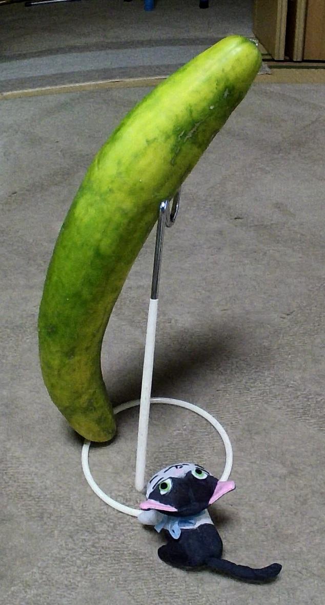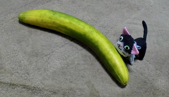 「僕…僕、ものすごちっちゃなってしもた...キュウリがこんなにでかいニャんて...!」