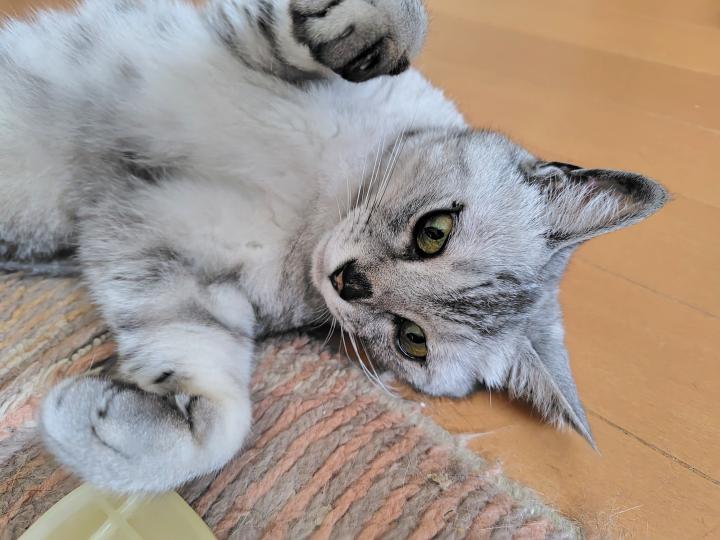 ベランダに出してーとおねだりするので、「やめとこうよ、そっちアッチッチだよ」と諌めるもどうしても行くというので、じゃあちょっとだけ行ってみな、と出してあげたらあまりのベランダの床の熱さにビックリしちゃったあんちゃん。