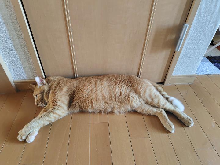 1階トイレ前で寝ているのんた。