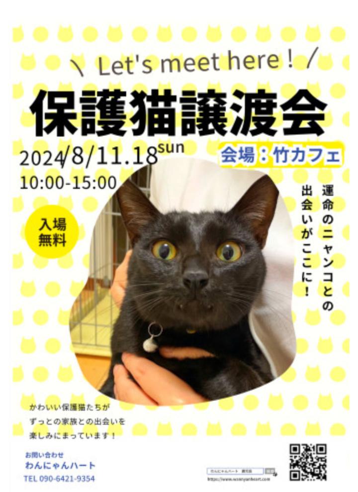 猫を迎えられない事情の方でも、譲渡会のことを猫が欲しい方に伝えてください。それだけでも、保護活動の助けになります。よろしくお願いします。💕