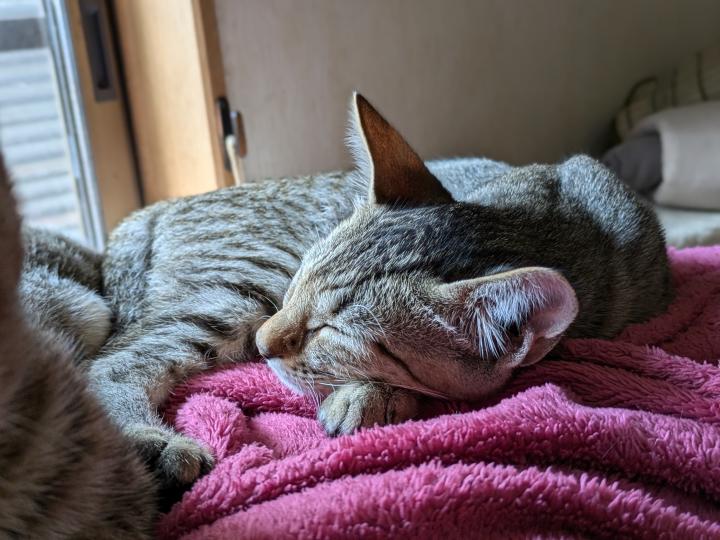 去年里親に出した子猫たちと同じで、母猫の遺伝が強いねぇー。見事にキジトラ(笑)