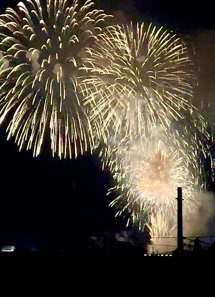 毎年恒例になってきた娘の旦那さんのお母さんも一緒に我が家のベランダからご飯を食べながらの花火鑑賞🎇💓