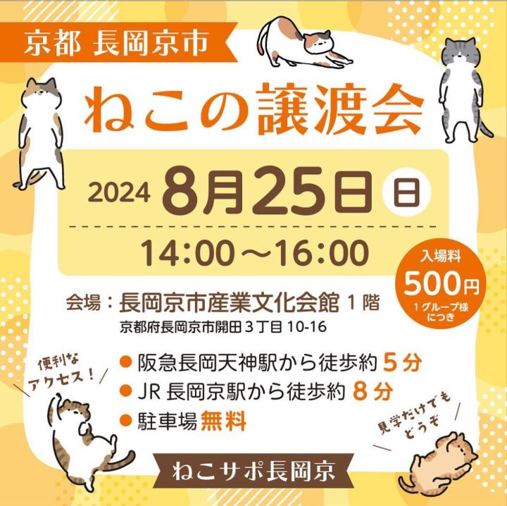 ねこサポ長岡京さんの譲渡会に行く予定なので、よかったらお顔だけでも見にきてください。