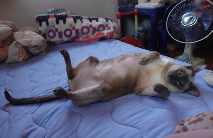 麻花瑠🐱「クーラーまだ いーい! おんも見てるー(≧▽≦)」