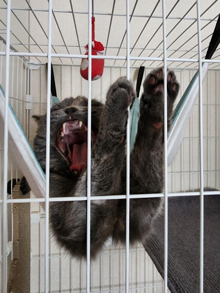 ハンモックで休んでる、くるちゃん。