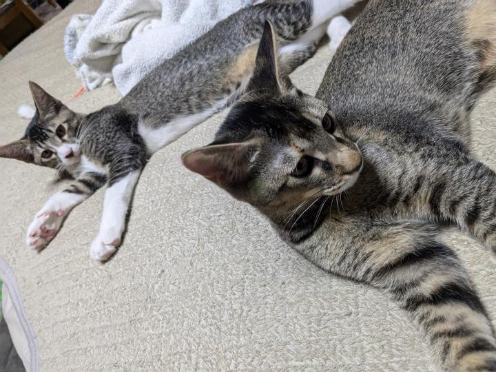 先住はもうおじーちゃんだし、引き取った時は1匹で来たからこんなに兄弟だと元気に遊ぶんだなと暗闇の中踏まれまくりながら寝ました🤭