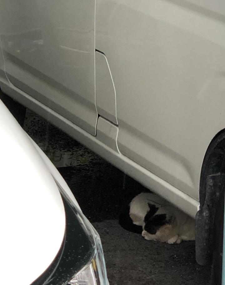 雨の降る中車の下に腰を落ち着ける所を目撃すると、何だか物悲しい気持ちになる。