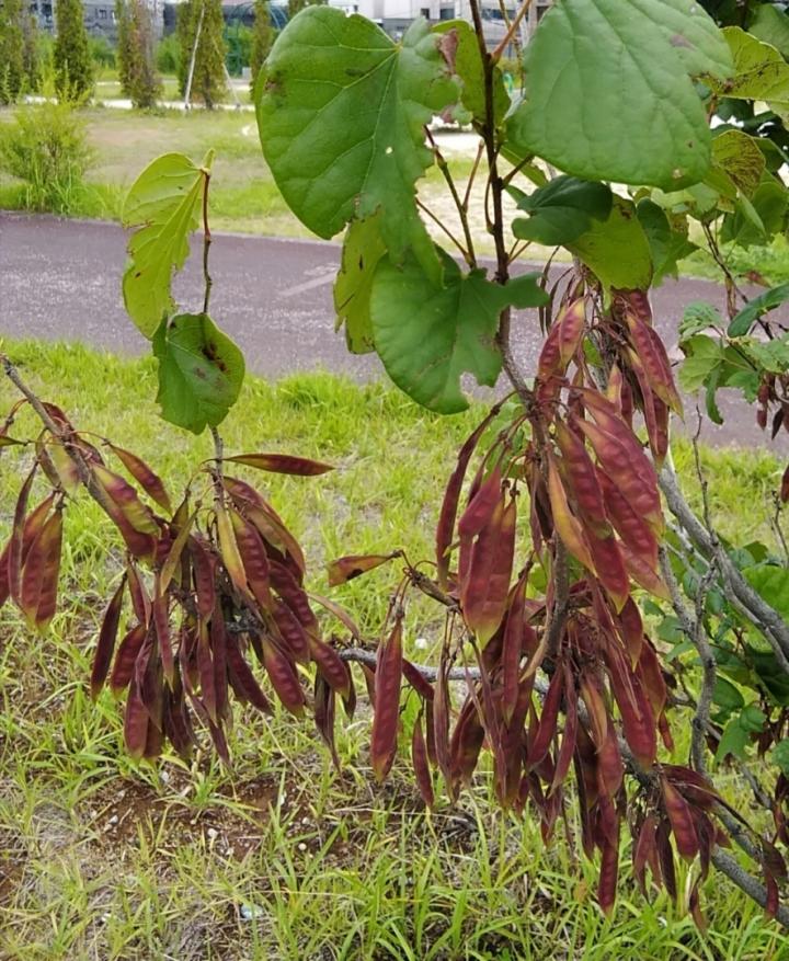 ハナズオウの種 マメ科の落葉樹、中国原産です。春に鮮やかなピ