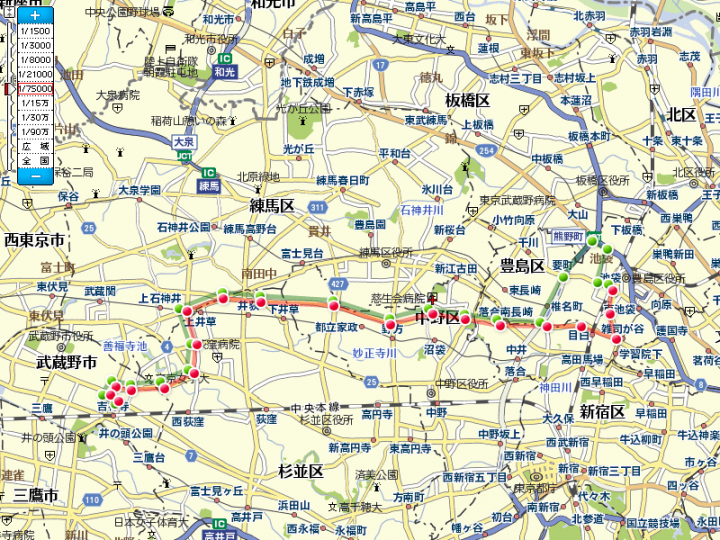 帰り・・・緑ルート、17km、1時間10分、581kcal