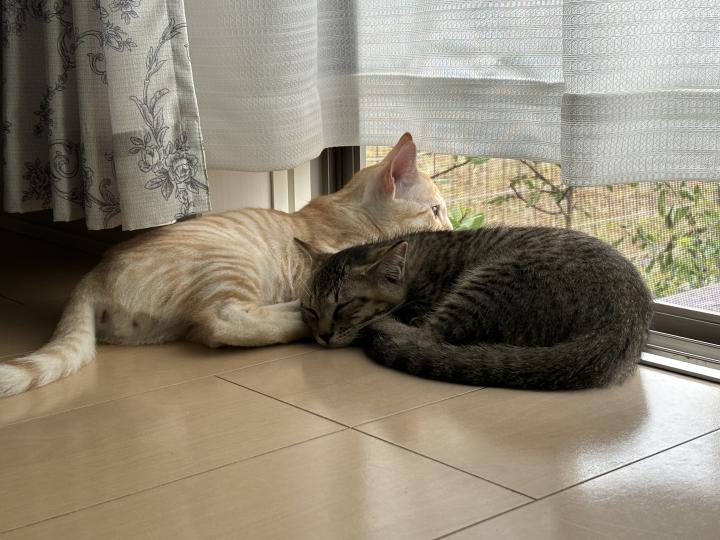 このまま2匹で眠るのかと思いきや、仲良く運動会がスタート。