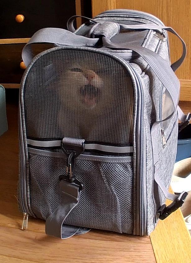 キャリーに入って…ちょっと抵抗するゆずちゃん。