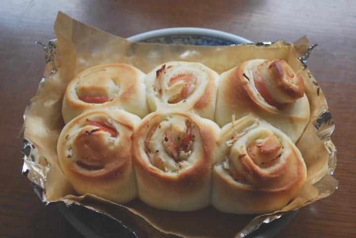 ママはピザの残りで「ベーコンオニオンロール」ちょっとブラックペッパーが