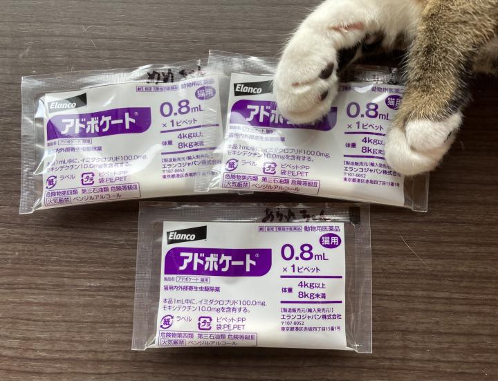 今、うちの猫たちはノミもそうだけど夏はフィラリア症予防で駆虫薬を使っています。