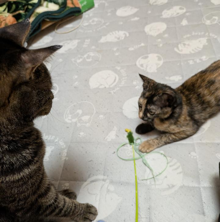 さーちゃんは、いてもいいけど、あんまり近寄らないでって感じ。ちょっとシャーってしちゃう。