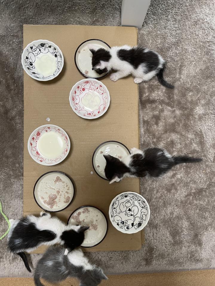 みんなでお食事 レイちゃんグレーの子は現在入院中です。