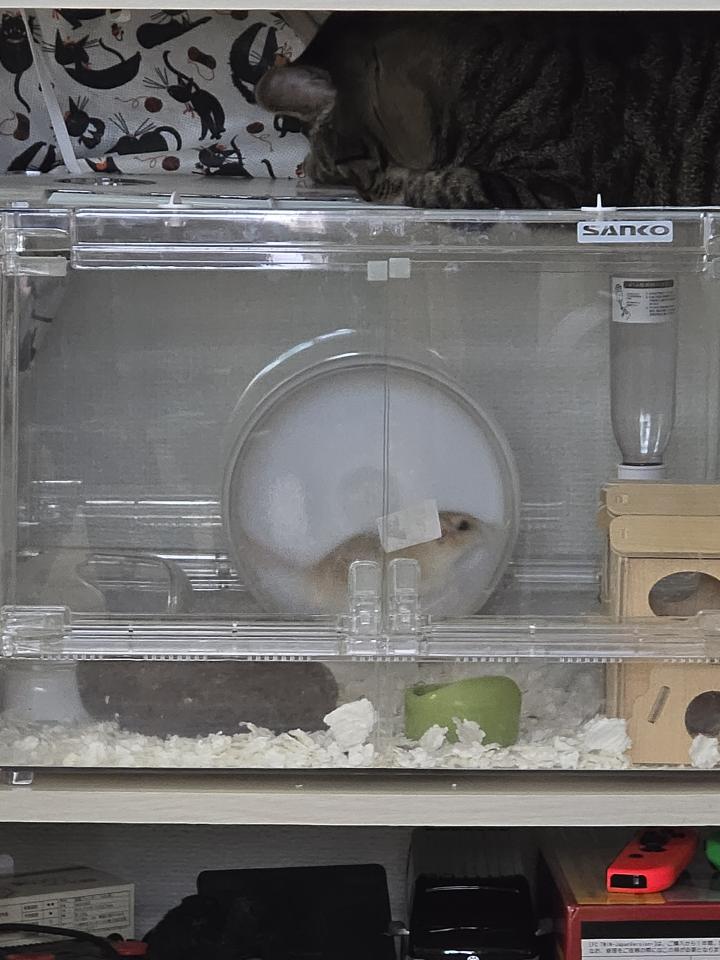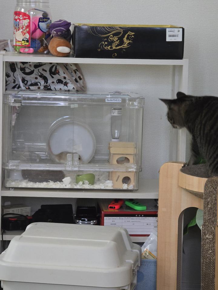 アッ!マウスはバナナ食べるかな?と小指の先位のバナナをあげました。