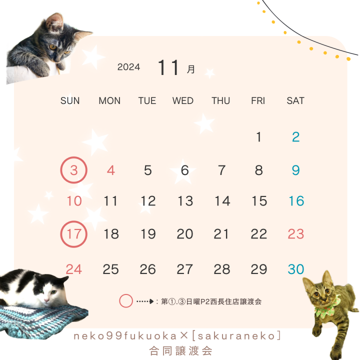 ねこ99福岡×【sakuraneko】合同譲渡会です。