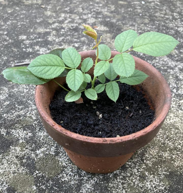 ダメ確定で生きていた先端の新芽を挿したら根が出てきたんです。