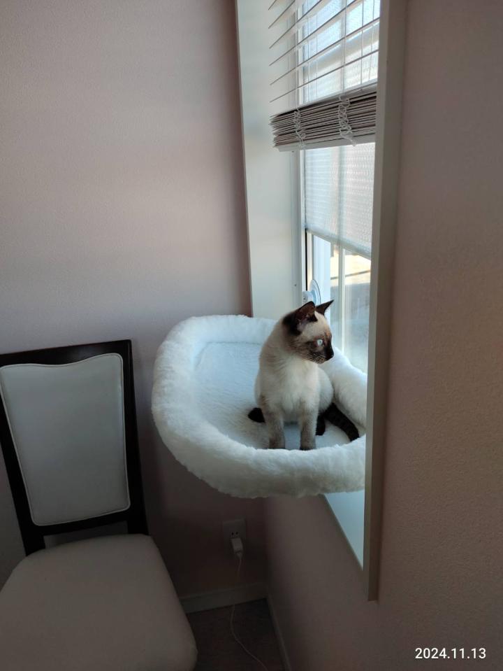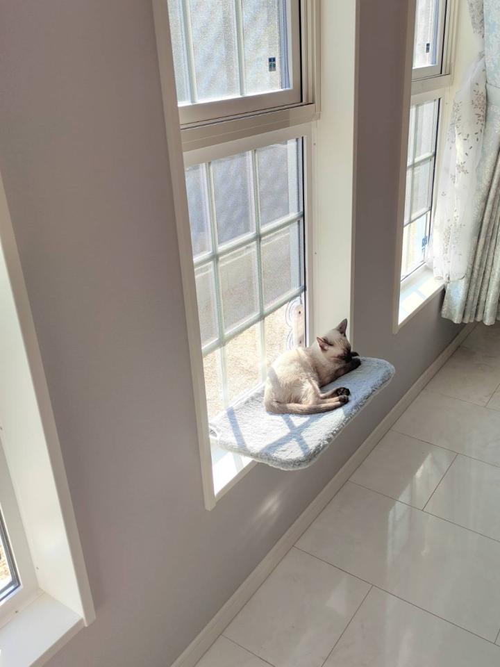 今日はリリちゃんのひなたぼっこも考えて窓に付ける吸盤タイプのベッドを通販で購入してみました😌