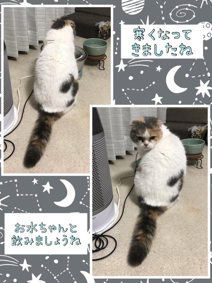 秋口にちょっとお水を飲む量が減っていたうちのニャンズ、暖房を入れるようになってから