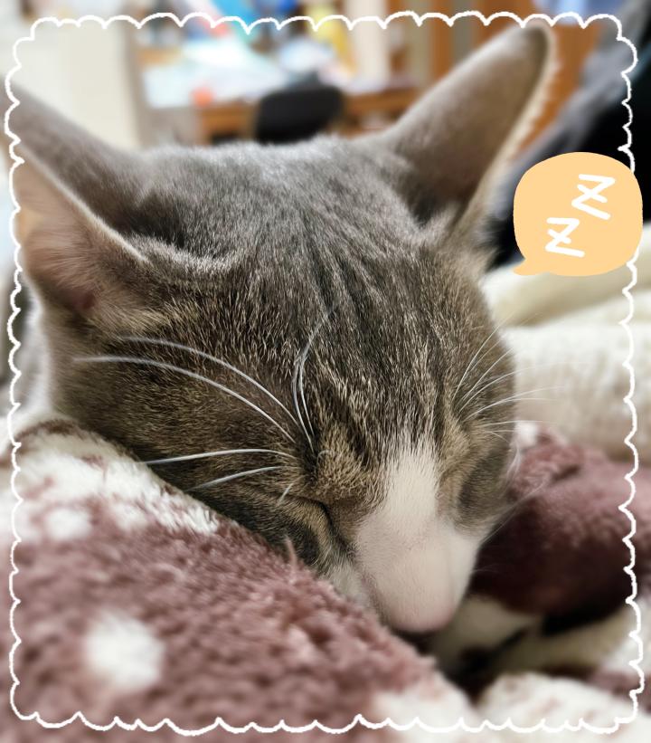 片付けに追われる飼い主を他所に、日光浴出来ないならベッド拝借〜と、人のベッド占領してる🤣