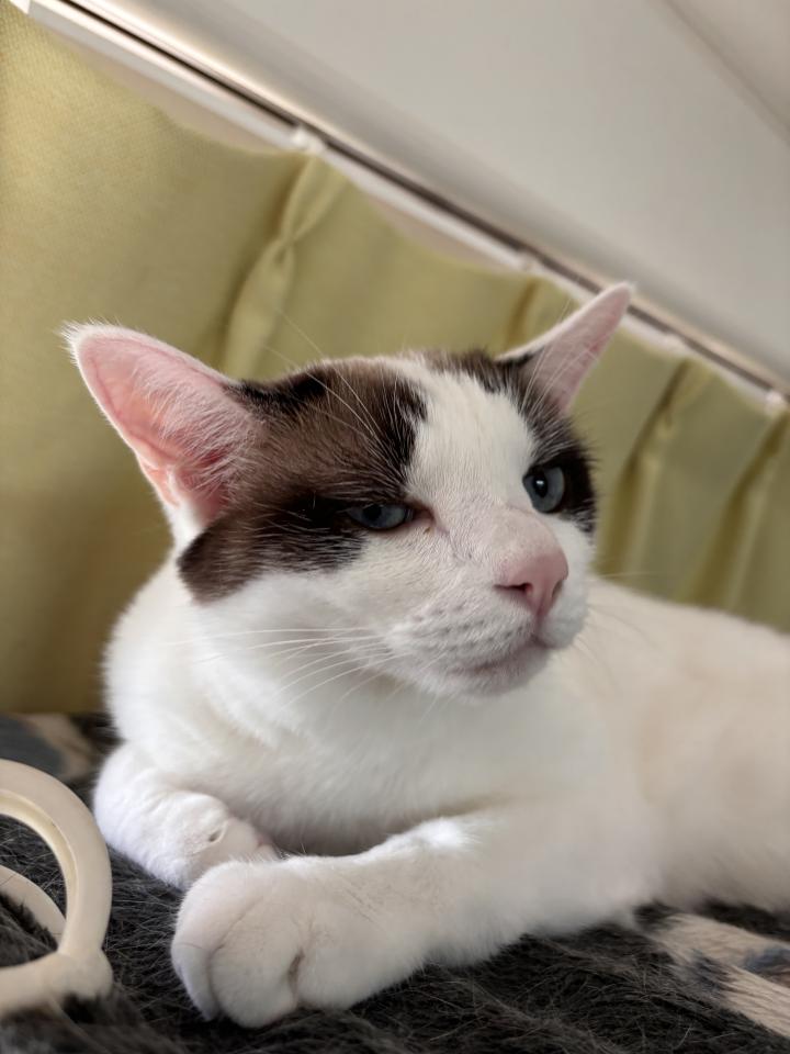 3段ケージの天井で寝るのが大好きなのでうしろのカーテンレールが近くに写っているわけです笑