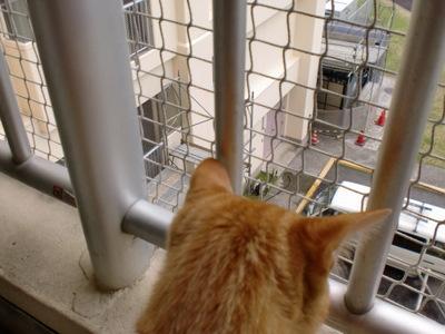 ベランダ内でも作業する為、鳥よけネットは取り払われて