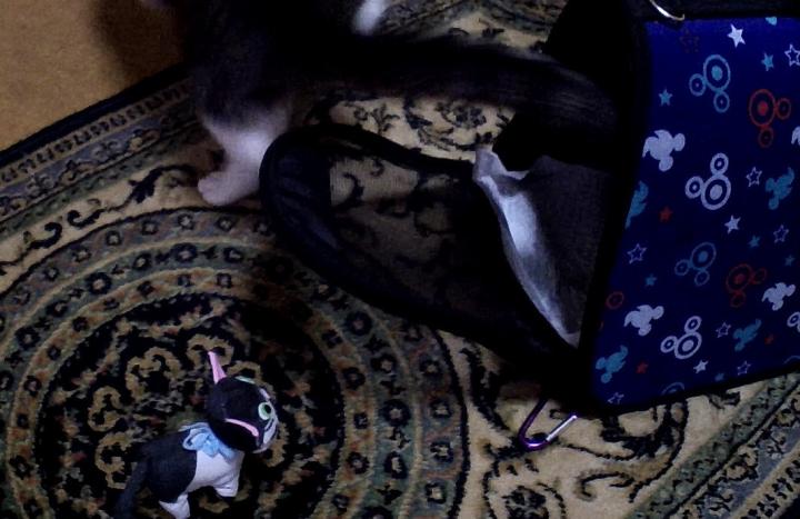 バッグを開けると、素早く飛び出して逃げるように奥の部屋へと走る七七保。