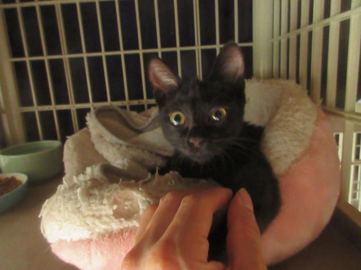 で、保護した仔猫は2~3ヶ月ぐらいの黒猫の男の子。