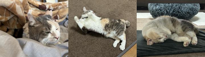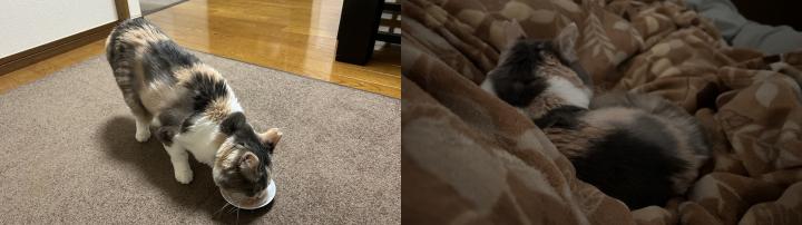 サプリ入りのちゅ~るを食べたり、一緒に寝たり。