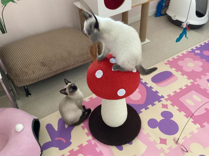 今まで2階の春君(18歳の先住猫さん)から借りてました。