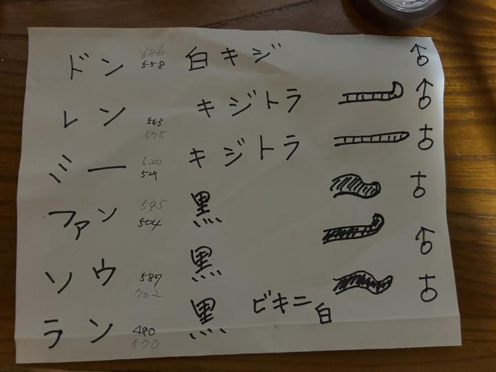 私がお留守番に行った時に作ってくれた6匹の見分け方表