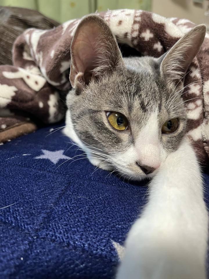 2024年4月9日産まれのMIX猫(♀)を飼ってます! 親兄弟と生後間もない時に離れてしまったので、一緒に遊んだり出来る子とのご縁を探しています。
