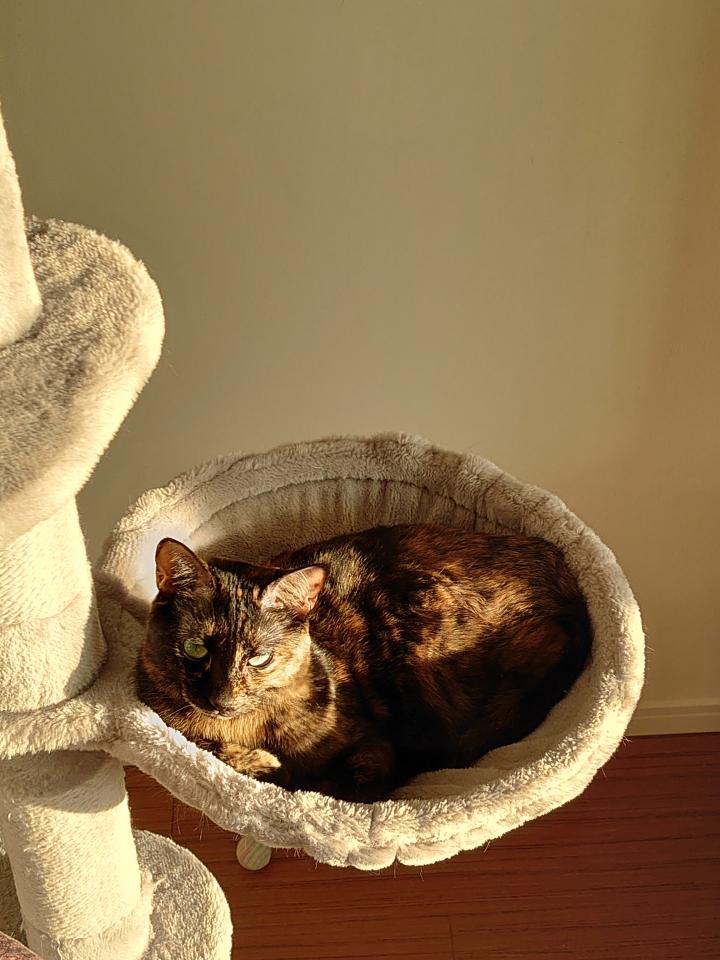 前はすかさずキャットタワーによじ登ったり、