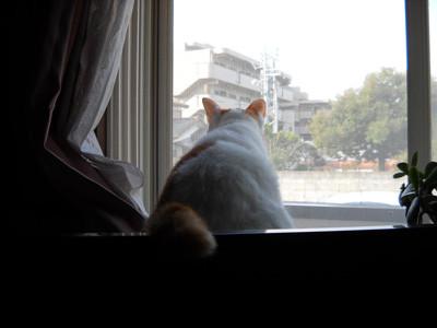 この冬、コタツネコだったちびもこんな感じでお外を見ることが多くなってきました。