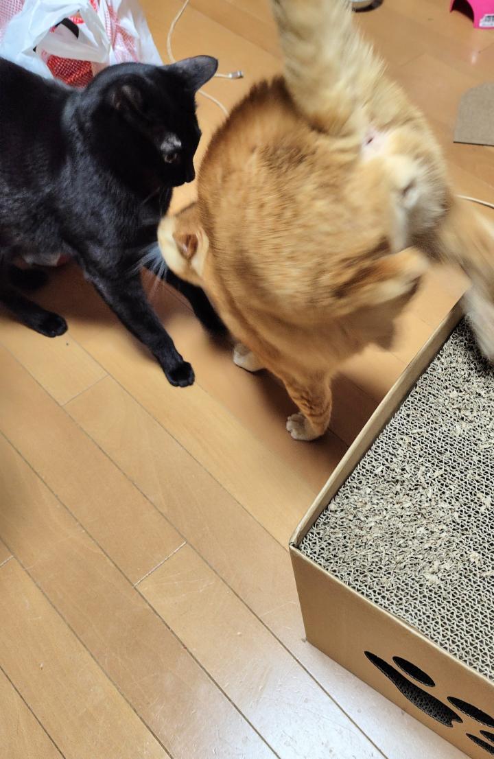 動けなかった鬱憤を晴らすように猫じゃらしで遊びたがったり、のんたにケンカを売りに行ったり。
