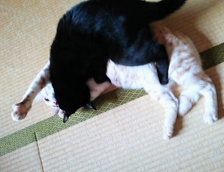 今日、姫にゃんを羽交い絞めにして噛みついて怒られていました。