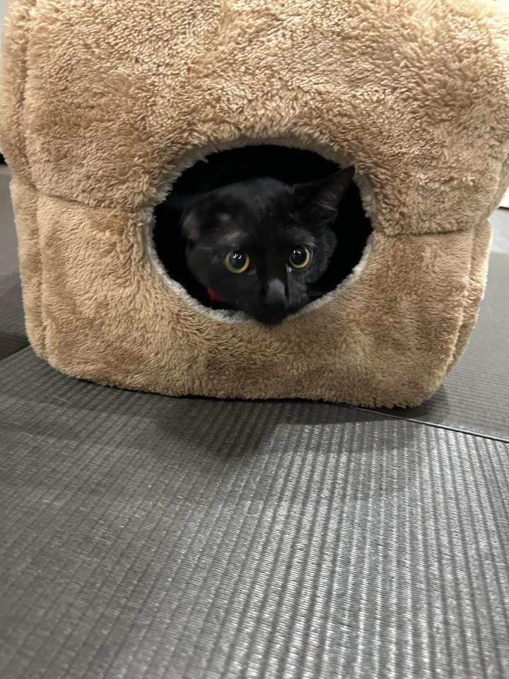 特徴:全身黒で赤い首輪(リボン付き)をつけてい