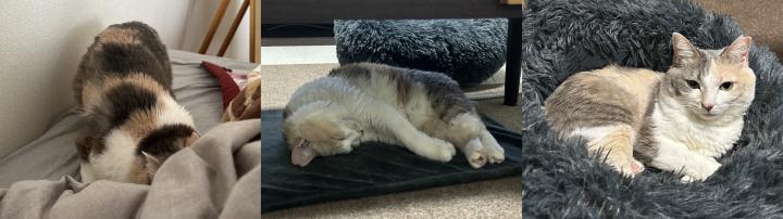 起床を待ってたり、暇そうにしてたり、ニャンモナイトしたり。