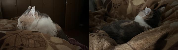 ●12/22(日) 週休布団に潜ってきたり、ホットカーペットで寝たり、先に就寝したり。