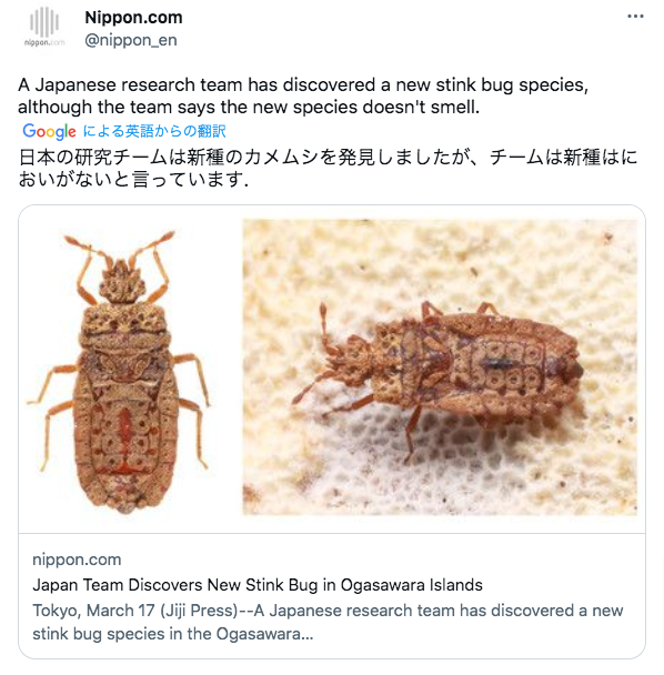 日本で発見された、臭くない新種のカメムシ…いるのね?!(笑)