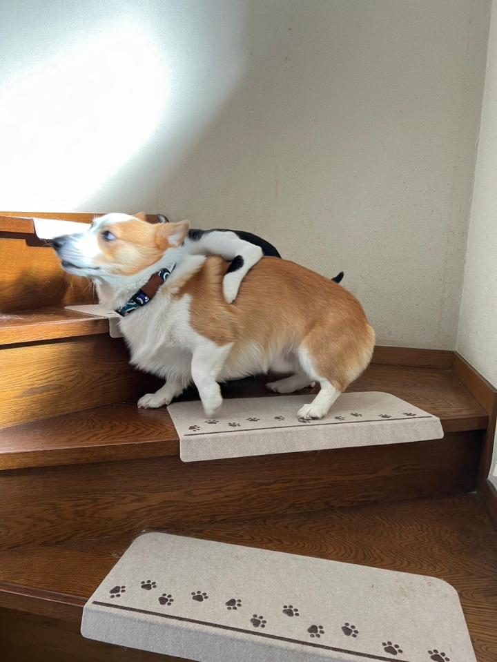 今のところ元気いっぱいにコーギーとプロレスをして大はしゃぎしています。